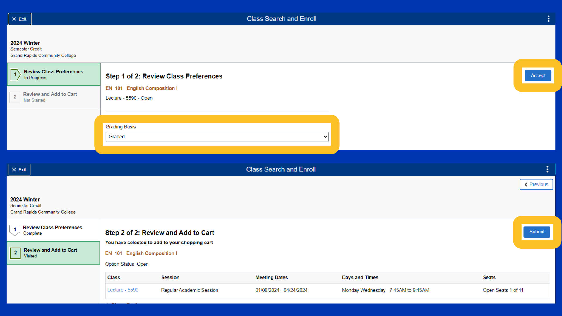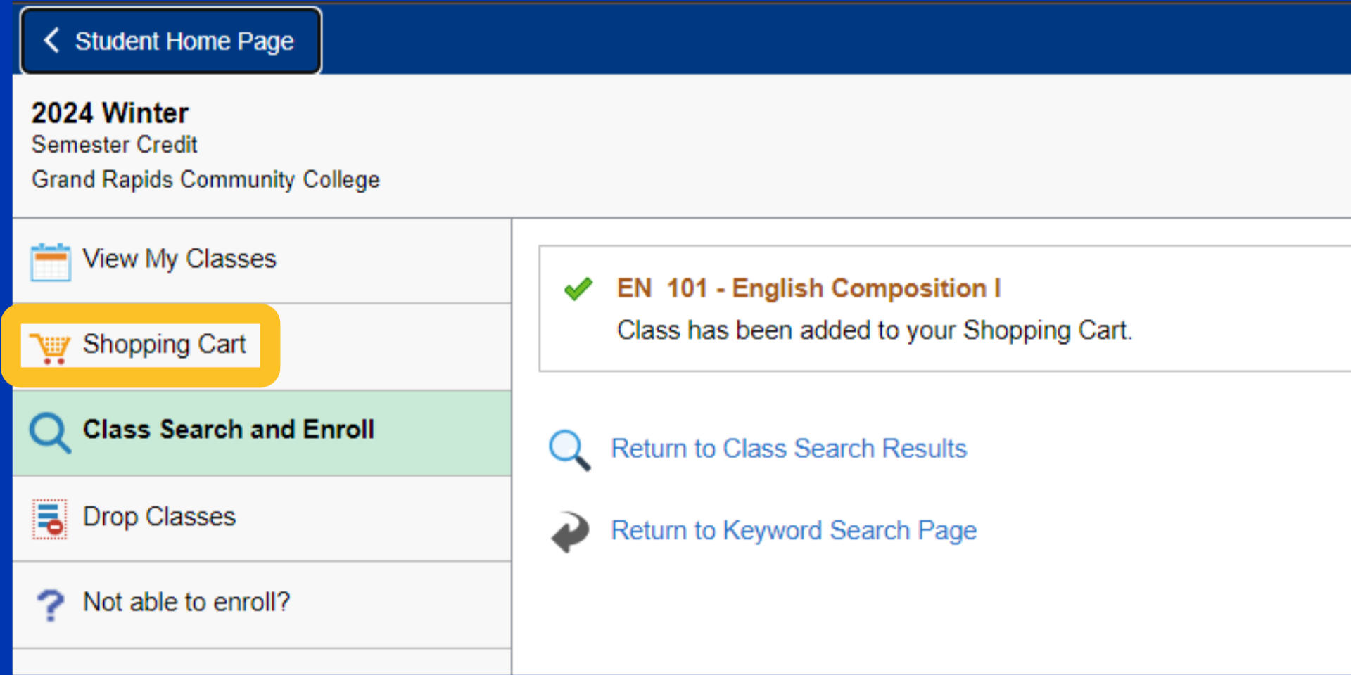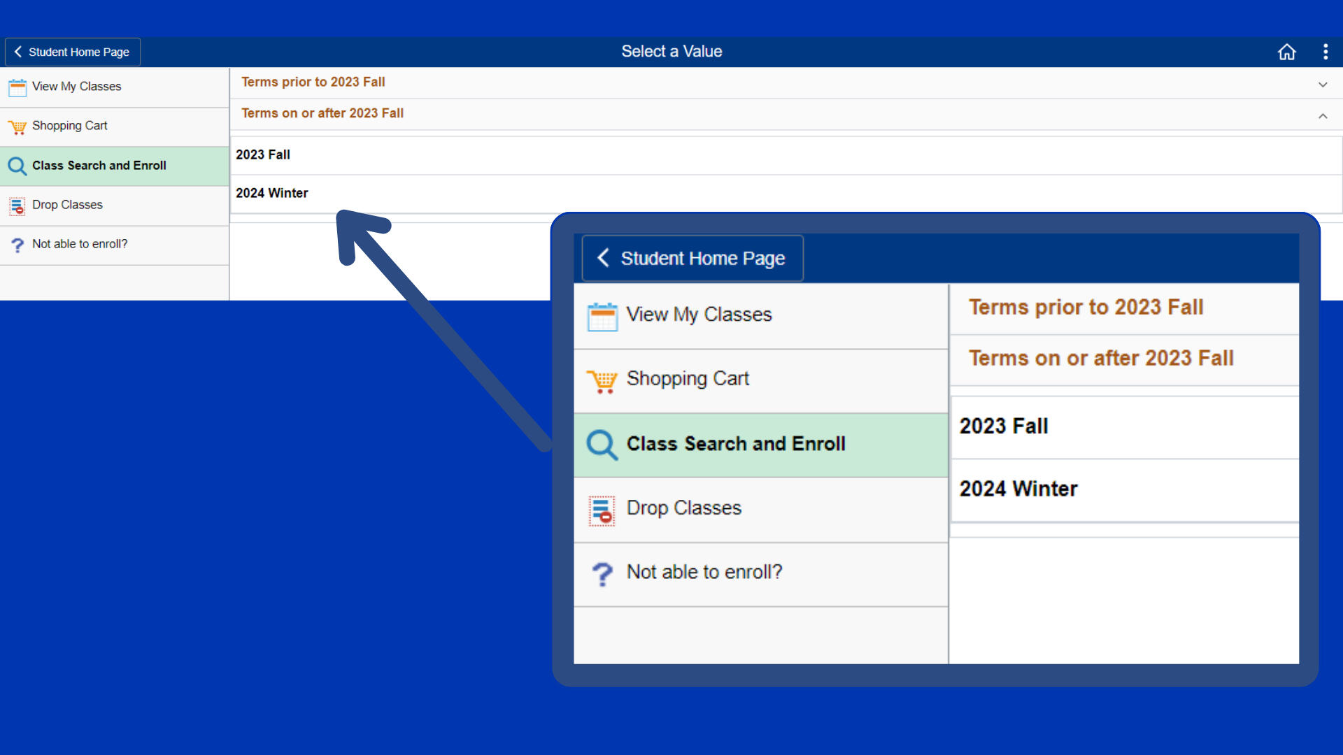 It may ask you to select the term you want to enroll for. For this demonstration, we'll be enrolling in 2024 Winter.