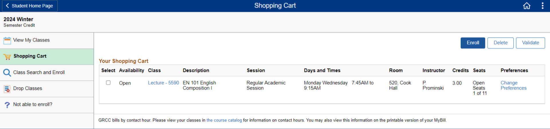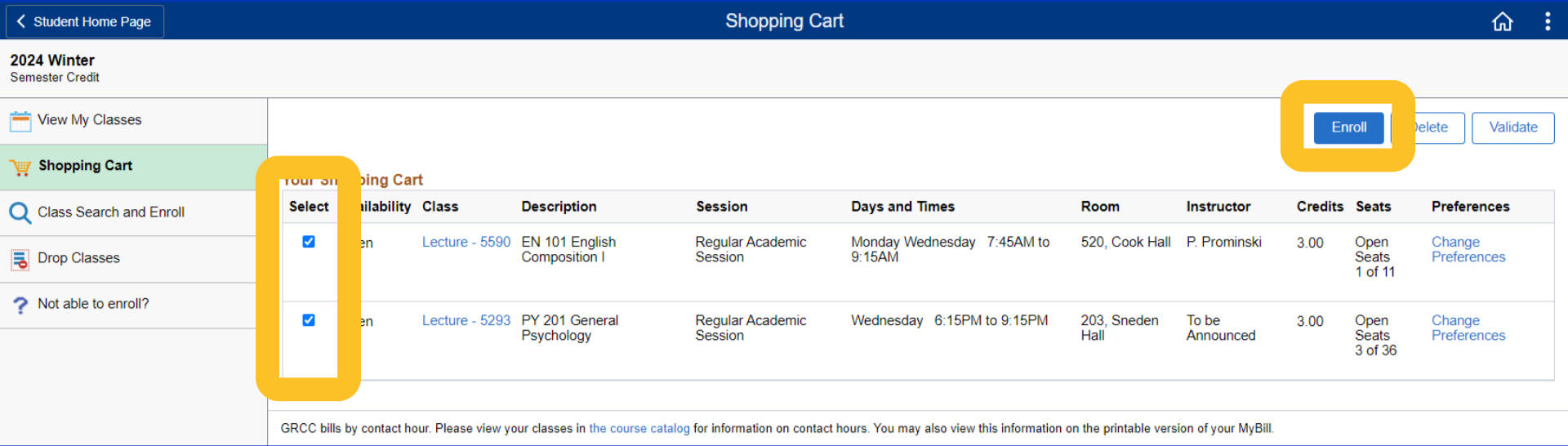 If you're experiencing difficulties enrolling for classes, please let one of the Advising and Registration staff members know.You can also connect with our Enrollment Center for further assistance after orientation at (616) - 234 - 3300.